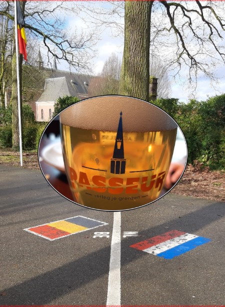 Wij hadden geluk. We werden genodigd om te zien hoe de grens dwars door de kloostertuin en de oude abdijgebouwen loopt. Een bijzondere ervaring om op deze manier toch een foto te kunnen maken van de grenspaal. En aansluitend natuurlijk bier uit eigen abdij.