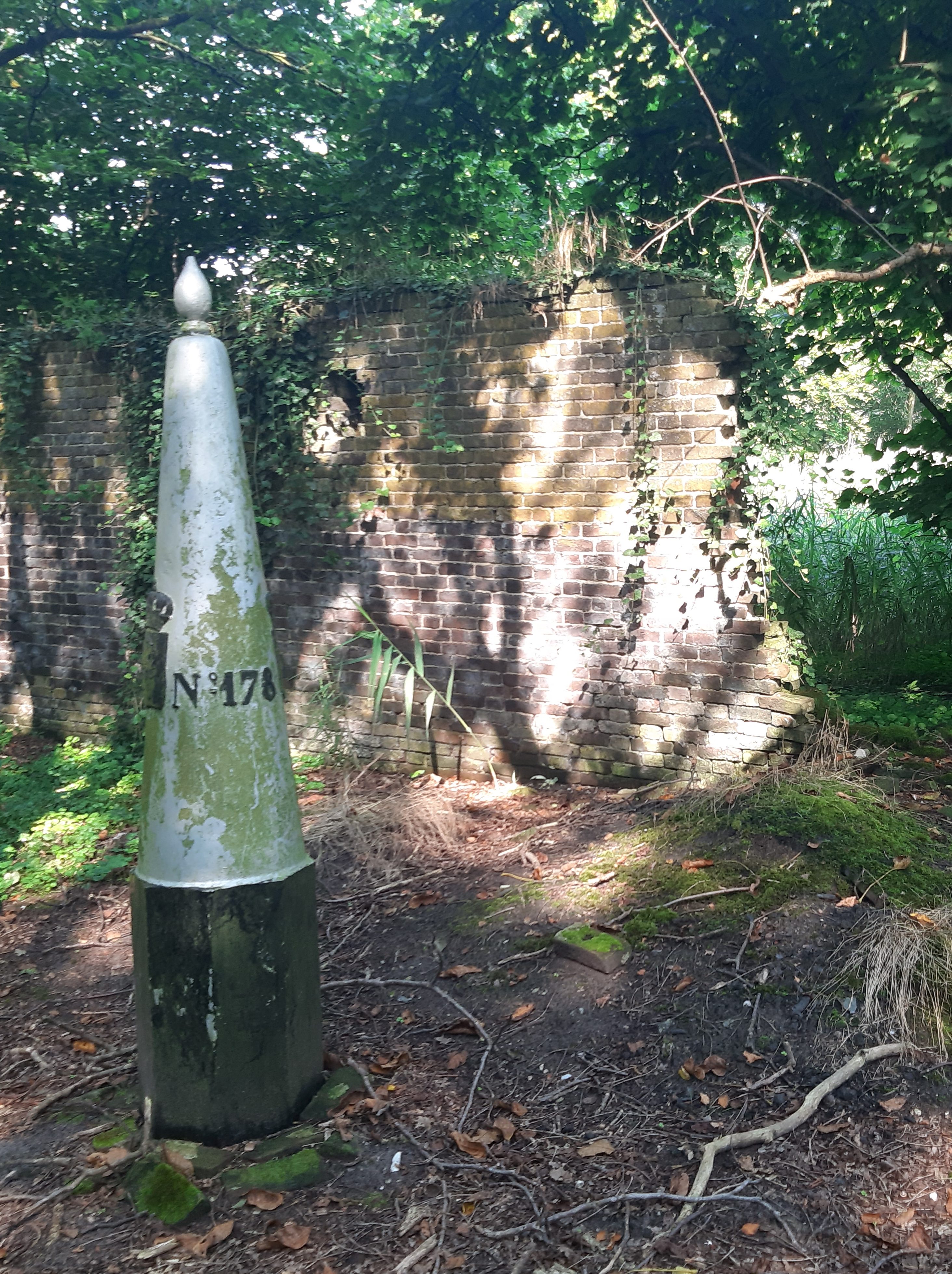 Bijzondere locatie. Op internet circuleren wel afbeeldingen maar deze grenspaal staat op een afgesloten privaat domein. Niet toegankelijk voor publiek en dat moeten we respecteren.