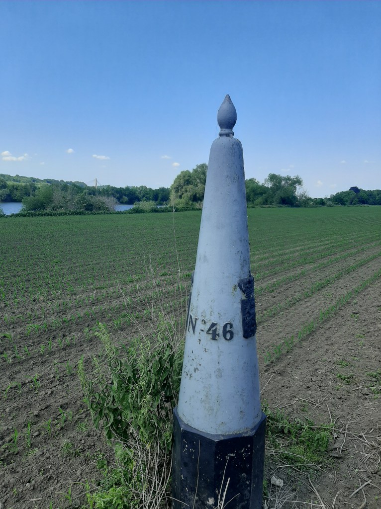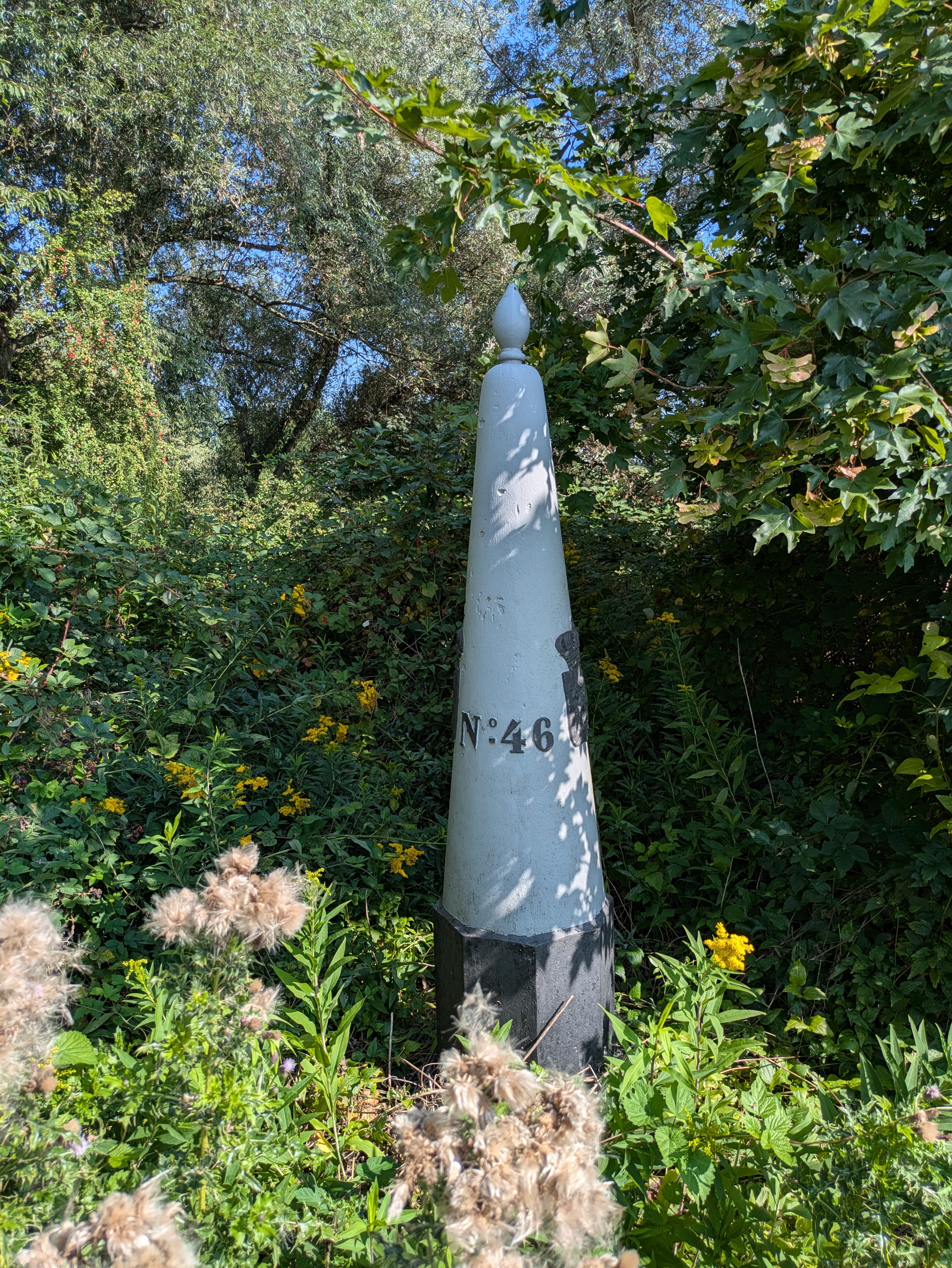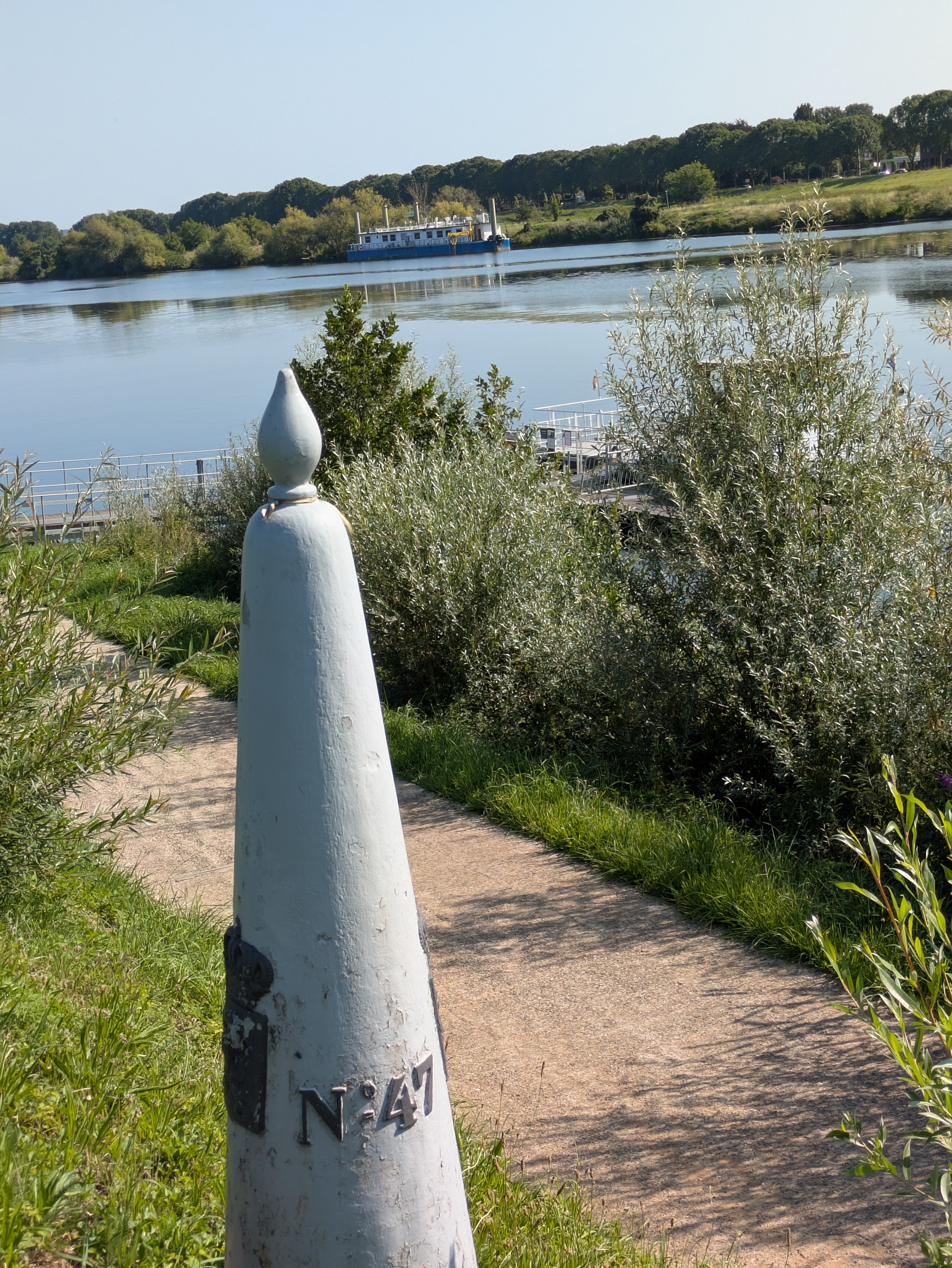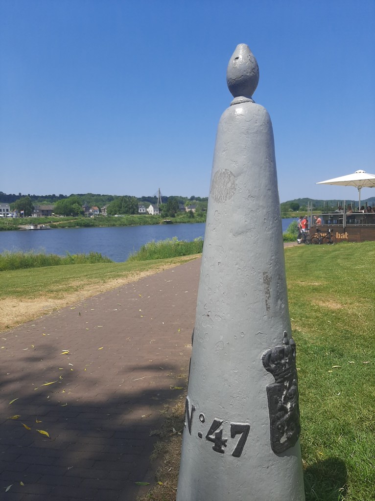 Met de Cramignon steek je bij Eijsden de Grensmaas over naar Wallonië. Daar staan vier “franstalige” grenspalen. Enkel deze twee zijn vrij toegankelijk.