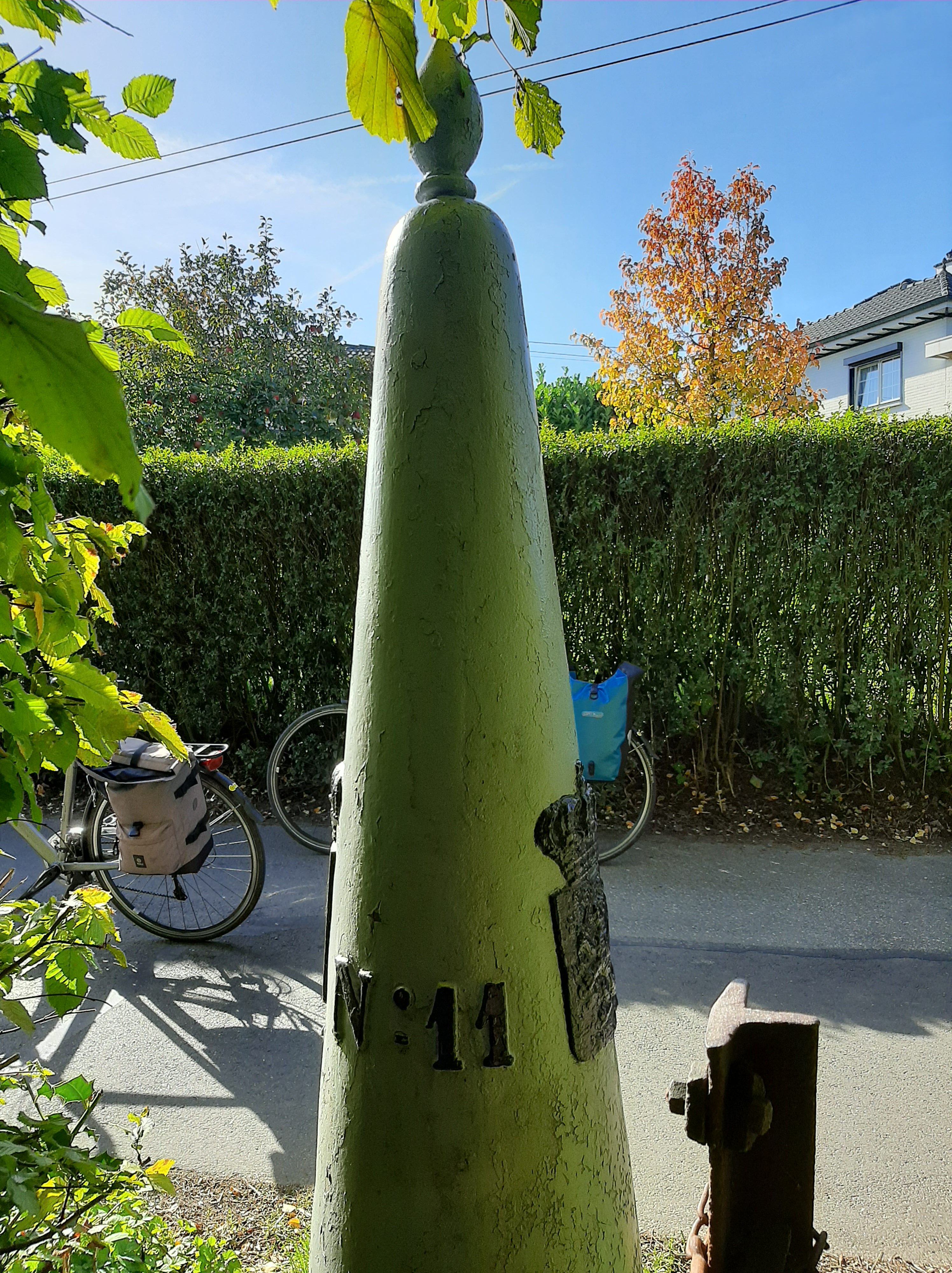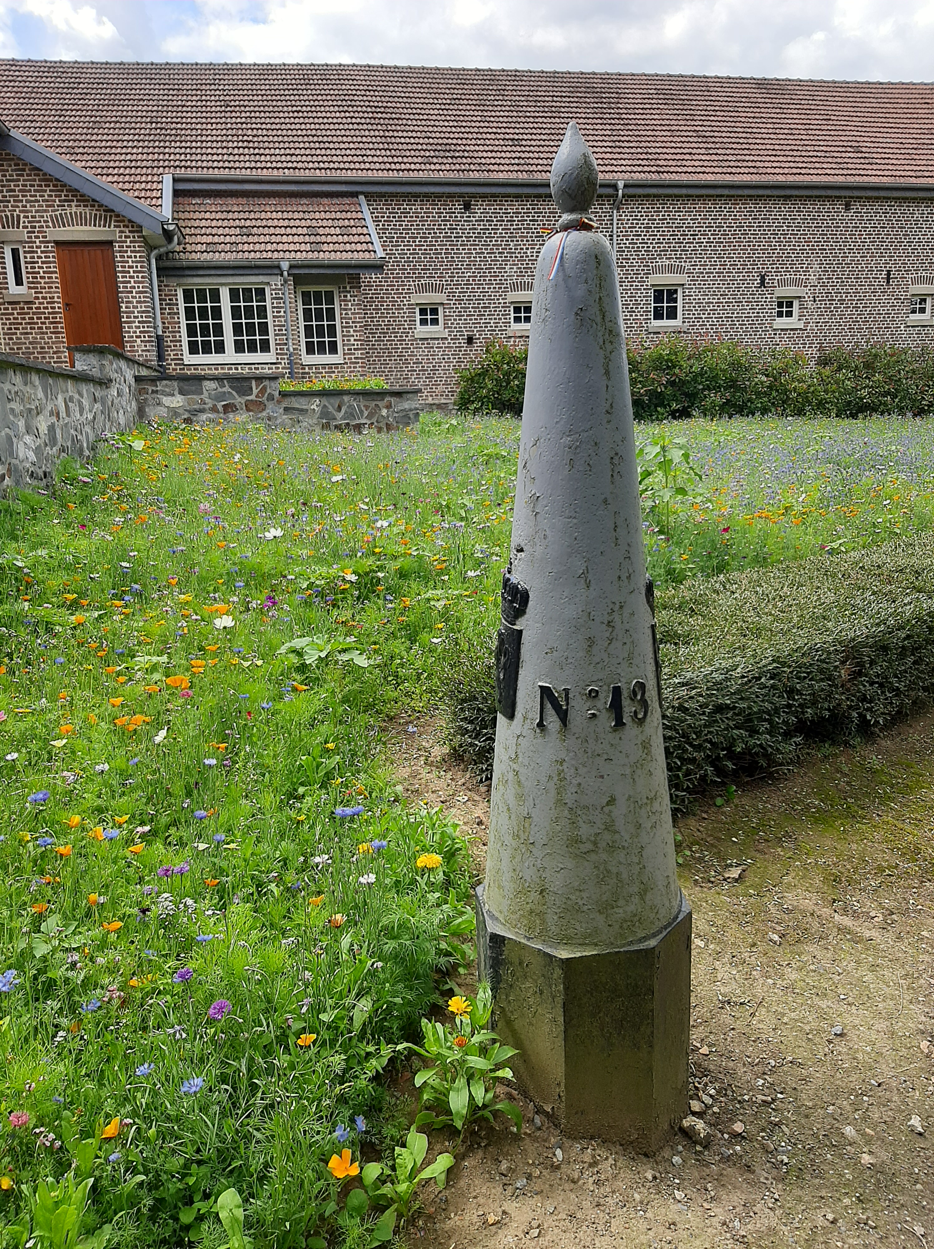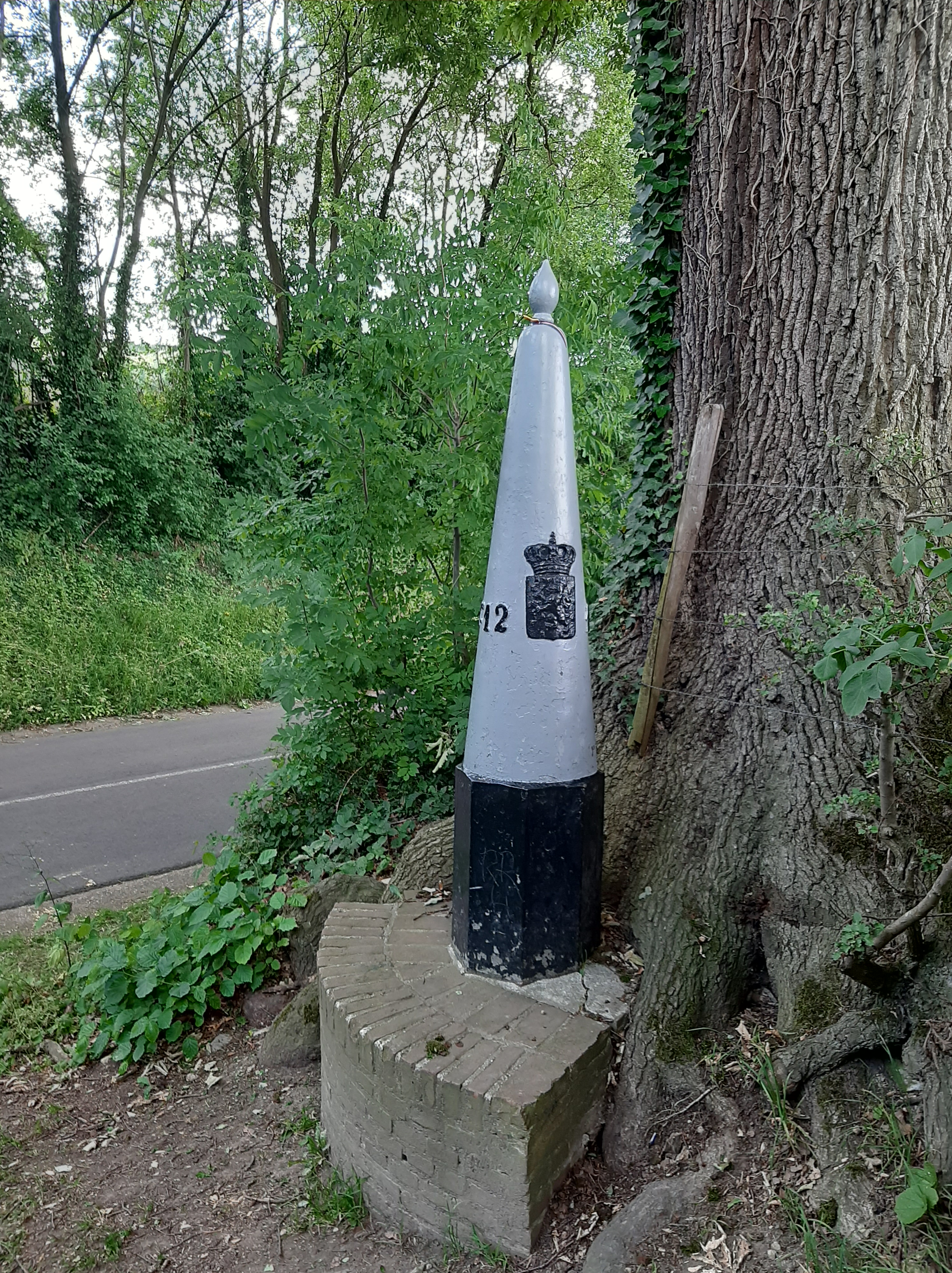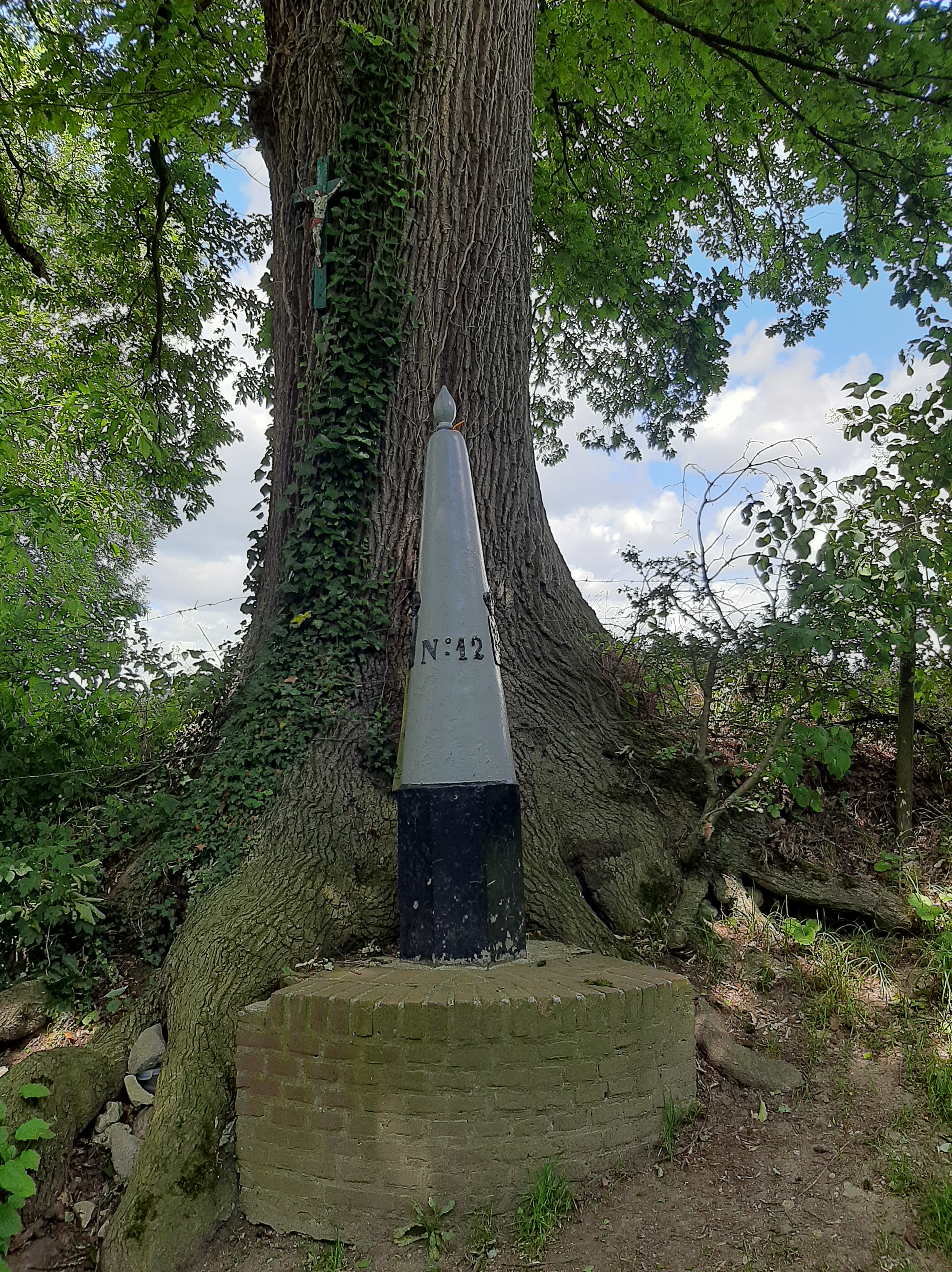 Vaals – Eijsden achtste veldtocht 6 juli 2023. Eerder hadden we grenspaal 11 al gevonden, fietsten we toevallig langs 7 oktober 2022.